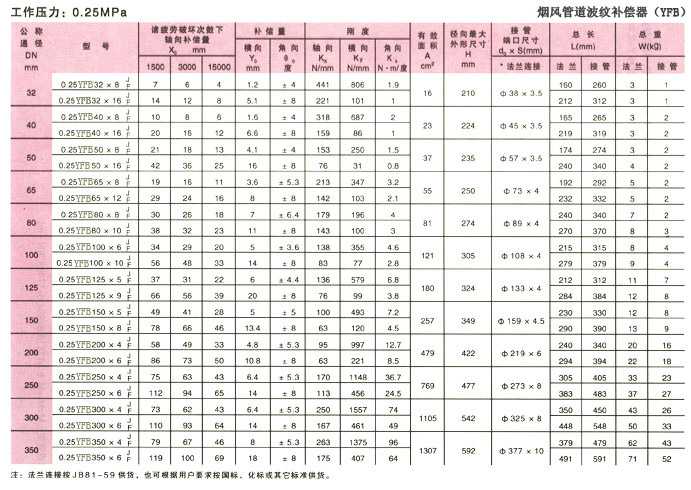 煙風(fēng)管道波紋補償器產(chǎn)品參數(shù)1